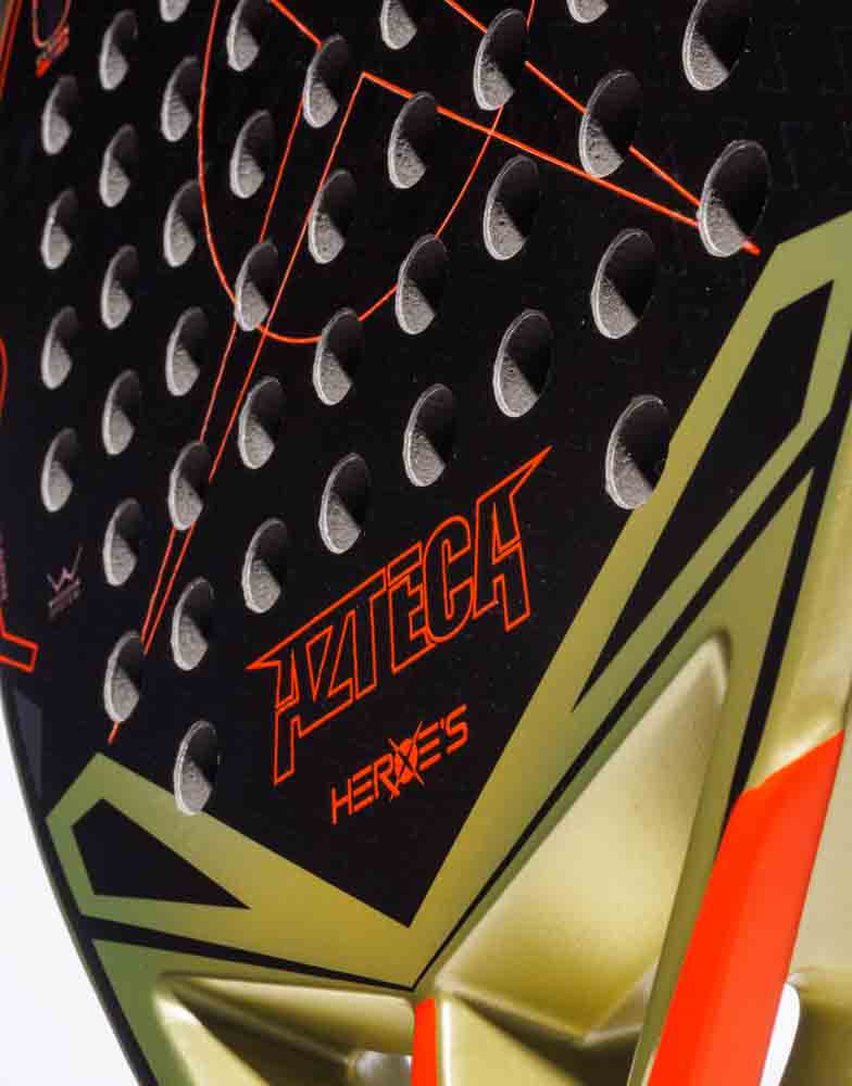 Ракетка Azteca 2026 идеально подходит для тех, кто любит атакующую игру и доминирует в матче благодаря точным и агрессивным ударам. Новая рама полностью переработана с учетом аэродинамической оптимизации, включая технологию Air Flow и специально разработанные каналы, которые снижают сопротивление воздуха и улучшают скорость замаха и плавность удара. Система Predator System Bridge с технологией Vibra X обеспечивает оптимальное поглощение вибраций, предлагая комфорт без ущерба для мощности. Головка из 12-к карбона обеспечивает прочность ракетки и максимальную отзывчивость, идеально подходящую для опытных игроков, которые хотят выжать максимум из каждого удара. Специальная технология 3D Spin от Heroes позволяет головке лучше удерживать мяч, оптимизируя вращение и точность при точных ударах.